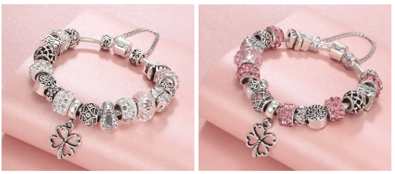 Fashion Jewelry European Silver Plated Bead Bracelet for Women Chain Charm Bracelets as Gifts