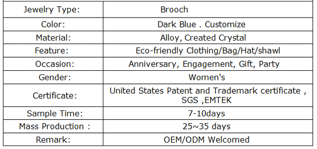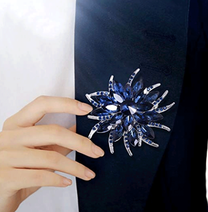 Best Selling Flower Brooch Pin for Women Brides Created Crystal Brooch Blue